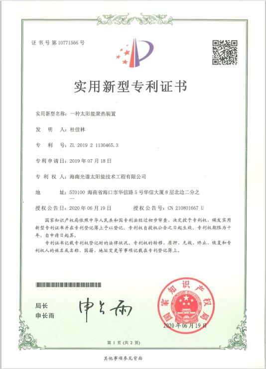 近日,我司申報的“一種太陽能熱泵蒸汽發生裝置”發明專利通過審查,獲得國家知識產權局授予的發明專利證書,授權專利號為“ZL201911126309.4”。 此次獲得國家頒發的專利證書,是對海南光譜公司創新實力的認可,代表著我司知識產權取得了突破性進展,為公司的持續性發展提供強有力的科技創...